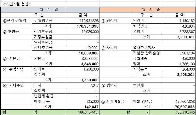 - 회원 여러분이 1,004만 원의 후원회비 보내 주셨습니다.