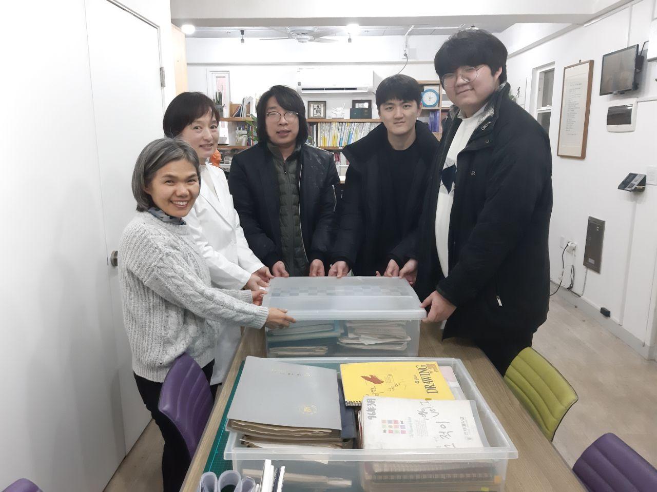 임재우 만화사랑 회장(정치외교2)과 만화사랑 학우들이 두 박스에 달하는 분량의 자료들을 들고 기념관을 방문했습니다. 자료들 중에 87년 만사 날적이 안에는 이한열의 글씨체로 보이는 글도 있었습니다.