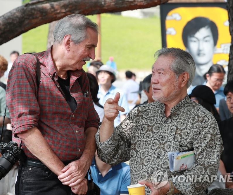 | 이한열추모제 참석한 킴뉴튼과 정태원 기자 |