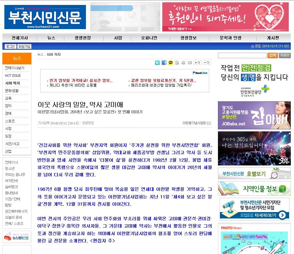 | <보고싶은 얼굴> 전 부천시민신문 - 고미애 |