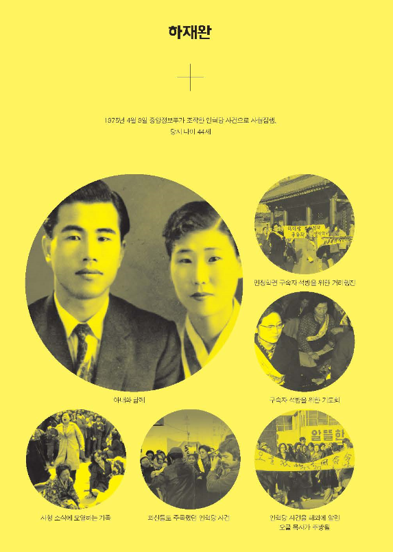 1931년 경남 창녕군에서 났다. 소년 시절부터 사회문제에 관심이 많았다. 대구공업중학교 재학시 남로당 산하 민주애국청년동맹 맹원이 되었다가 국가보안법 위반으로 6개월 복역했다. 학교는 단국대에 잠시 다니다 입대했다. 1957년 중사로 군복무를 마쳤다. 4.19혁명 이후 경북민주민족청년동맹과 자주통일중앙협의회 경북협의회 부위원장으로 일했다. 5.16 쿠데타 이후 수배령이 내려졌고 1963년 1차 인혁당 사건으로 체포되어 조사를 받았다. 이후 3선개헌반대 투쟁(1969년)과 민주수호 대구경북 협의회(1971년)에도 참여했다. 독재 정권은 영구 집권을 목표한다. 유신이 선포되었다. 투사들은 줄줄이 잡혀간다.1974년 ‘민청학련’ 사건이 발표되고, 긴급조치 4호가 선포된다. 그해 5월 1일 하재완을 남산 중앙정보부로 끌고 간 명분은 ‘인민혁명당 재건위원’ 사건이다. 끌려가고 세 달이 채 못 되어 비상보통군법회의에서 사형판결을 받는다. 항소하나 기각된다. 다시 상고하나 대법원에서 사형을 확정 받는다. 다음날 새벽, 사형이 확정되고 고작 18시간 만에 형이 집행된다. 모두가 잠든 이른 시각, 재심 기회조차 빼앗긴 8명이 형장의 이슬로 사라진다. 하재완이 중앙정보부에 끌려간 지 11개월만인 1975년 4월9일의 일이다. 세계법률가협회에서는 ‘사법사상 암흑의 날’ 또는 ‘사법 살인’이라 칭했다. 그의 나이, 44세였다. 사회는 그를 오래 부정했다. 그를 모른다, 그가 왜 죽어야 했는지 모른다 했다. 1989년에야 비로소 공개적 추모행사를 가질 수 있었다. 2002년 의문사진상규명위원회에서 인혁당재건위 사건이 조작된 사건이라 발표한다. 2007년 재판부는 20여회 공판을 거쳐 8명 전원에게 무죄를 선고한다. 드디어 명예가 회복되고 해원되었다. 2014년 원래 묻히었던 대구 현대공원 묘역에서 이천 민주화운동 공원으로 이장되었다. 하재완의 수의에서 작은 종이 쪽지에 적힌 글이 발견되었다. “그 날의 강대국 수뇌들이 저희끼리 제멋대로 삼팔선을 긋지만 않았어도 오늘날 우리 겨레는 오늘의 불행을 겪지 않았고, 지금쯤 오붓한 살림의 자족을 누린다.”