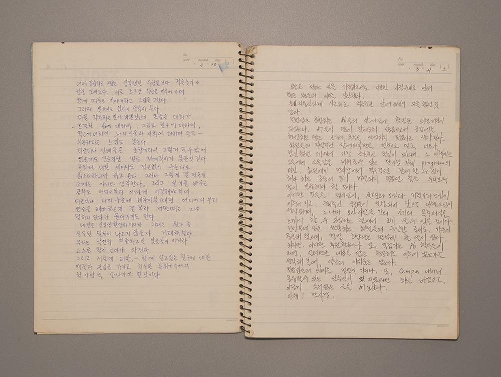 이한열이 쓰러지기 직전부터 사후까지의 한 달의 힘겨운 기록을 담고 있다. 오른쪽 페이지에는 “자유언론” 날적이의 의미와 오른쪽에는 “혁이가 또 흥분했군”이라는 글과 함께 이한열을 그린 스케치가 그려져 있다. (1987.6.1.~6.19.) 만화사랑 기증