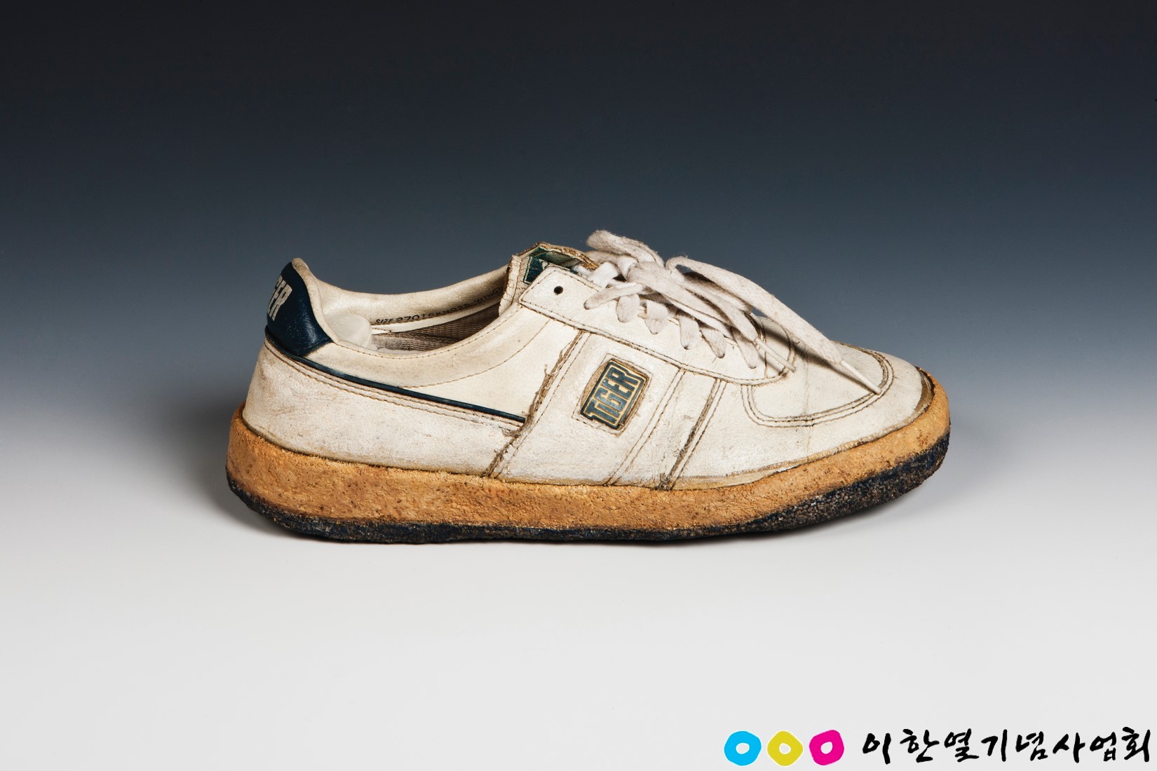 1987년 6월 9일. 이한열 열사가 최루탄에 머리를 맞고 쓰러질 때 흐른 피가 흔적으로 남아있다. 한쪽 운동화는 분실되었고, 남아있는 운동화는 이정희님이 주워 병원으로 가져와 가족에게 전달한 것이다. 산산조각이 났던 밑창 상부는 세로 문양, 하부는 가로 문양으로 구성된 희귀한 패턴을 재현해 냈다. 2005년 이한열기념관이 개관되었을 때 유족으로부터 기증되었고 이후 2015년 김겸미술품보존연구소가 복원하였다.