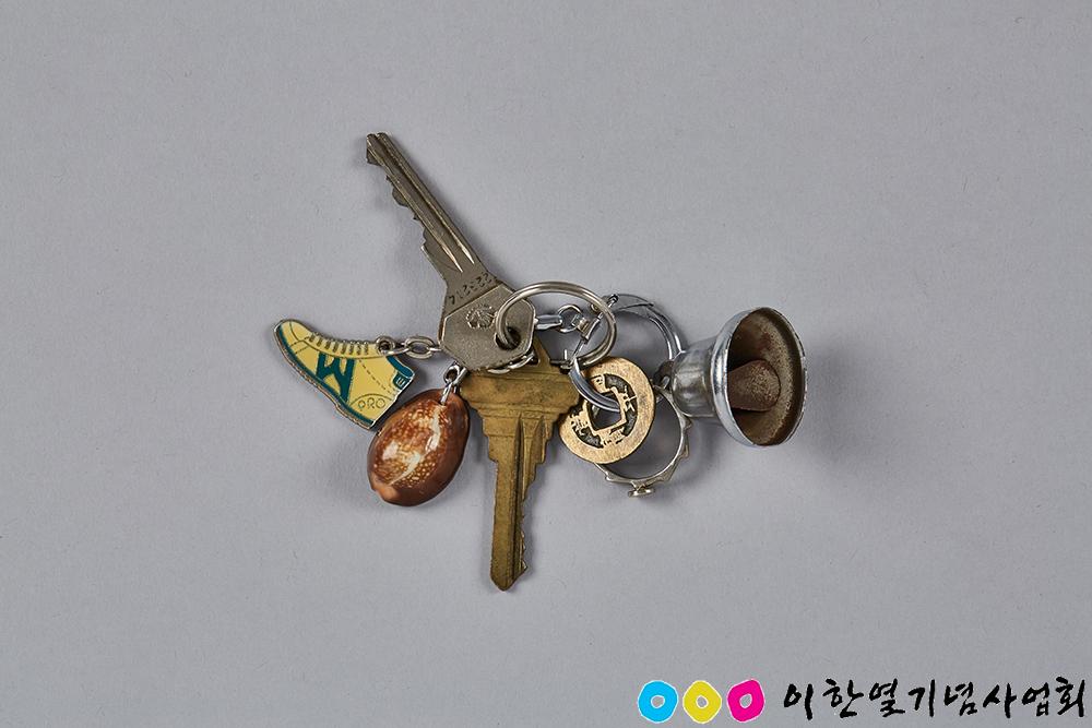 이한열이 마지막까지 몸에 지녔던 열쇠 꾸러미. 이 중에는 운동화 모양 마스코트도 있다.