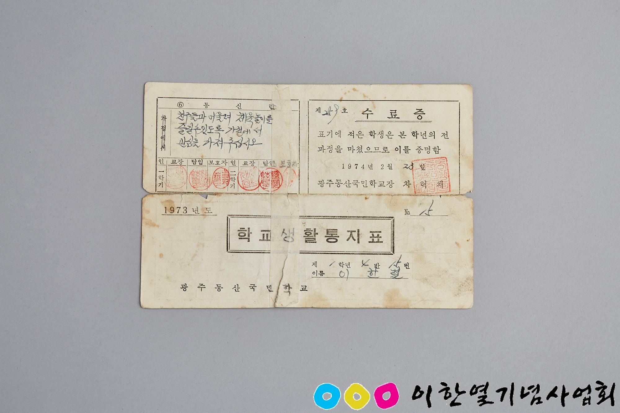 전 <신동아>기자였던 윤재걸 기자가 28년간 보관해 온 것을 2015년 12월 이한열기념관에 돌려주었다. 부모님이 선생님께 “예습복습할 것들을 더 많이 내 주어 가정학습을 많이 할 수 있게 해 달라.”는 전달내용이 눈에 띈다