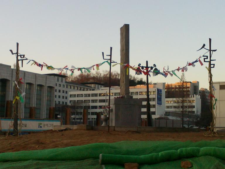파헤쳐진 동산에는 최병수 작가의 솟대가 세워져있었습니다.