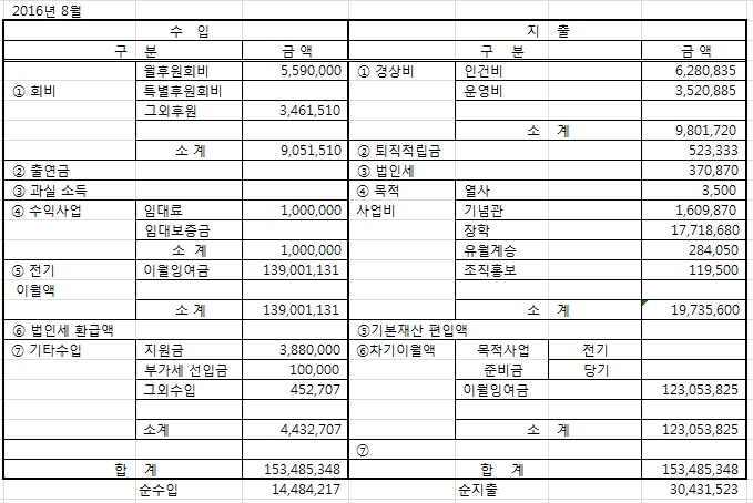 장학금 지급이 있었던 달이라 평소보다 지출이 많습니다.