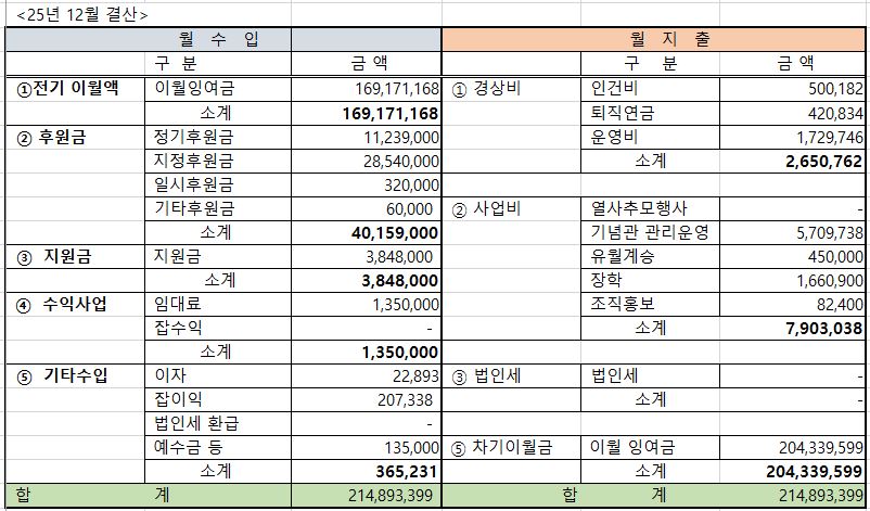 일반관리비, 인건비 등으로 790만 원의 기념관 관리운영비 지출했습니다. 유월계승(연대사업비) 45만 원, 이한열