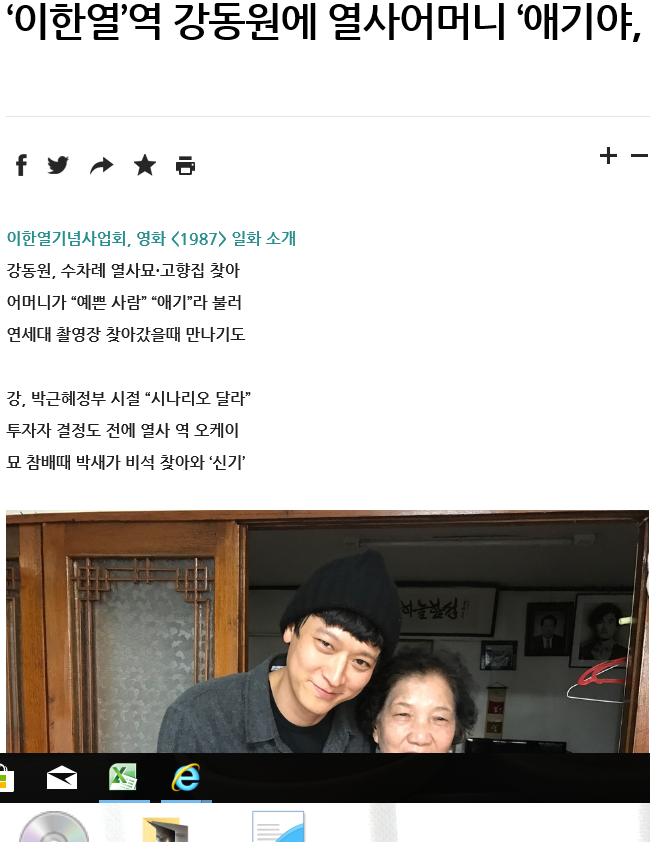| [한겨레신문] 2018년 1월4일, 영화 <1987> 강동원 일화 소개 |