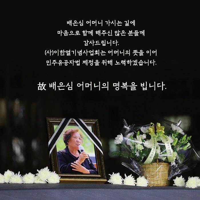 [한겨레] “아들아, 엄마가 갚을란다” 배은심 여사 별세…각계 애도 물결