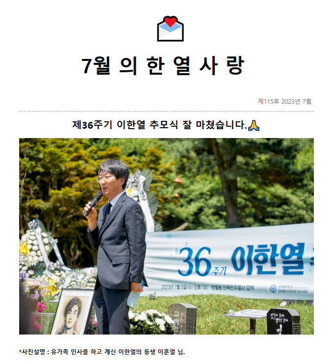 | 제 115호 2023년 7월 제36주기 이한열 추모식 잘 마쳤습니다 |
