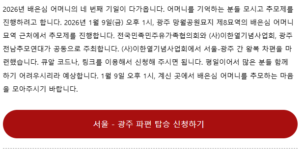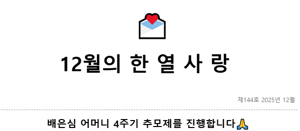 | 제 144호 2025년 12월 배은심 어머니 4주기 추모제를 진행합니다. |