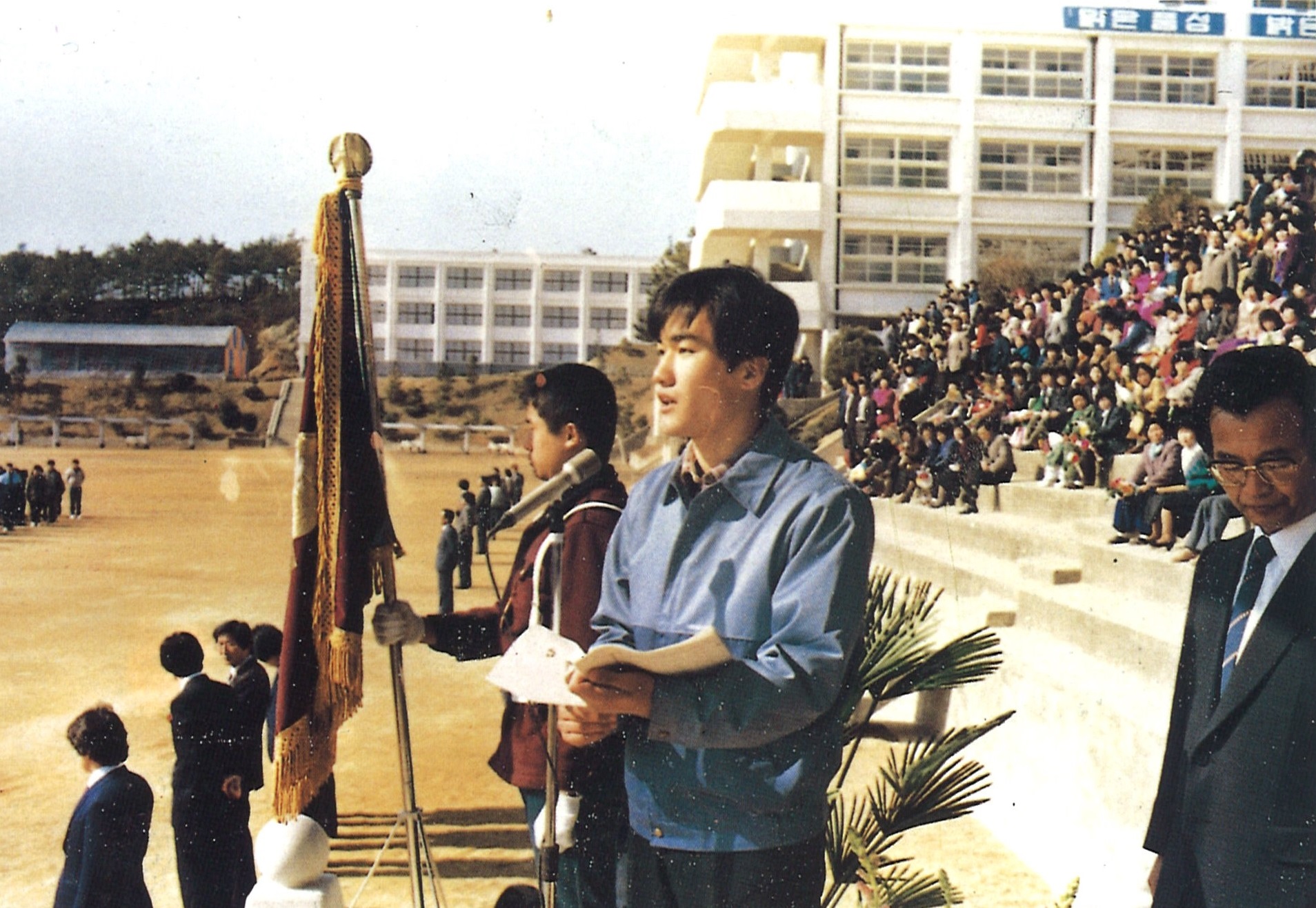 1985년 2월 진흥고 졸업식에서 답사하는 학생회장 이한열