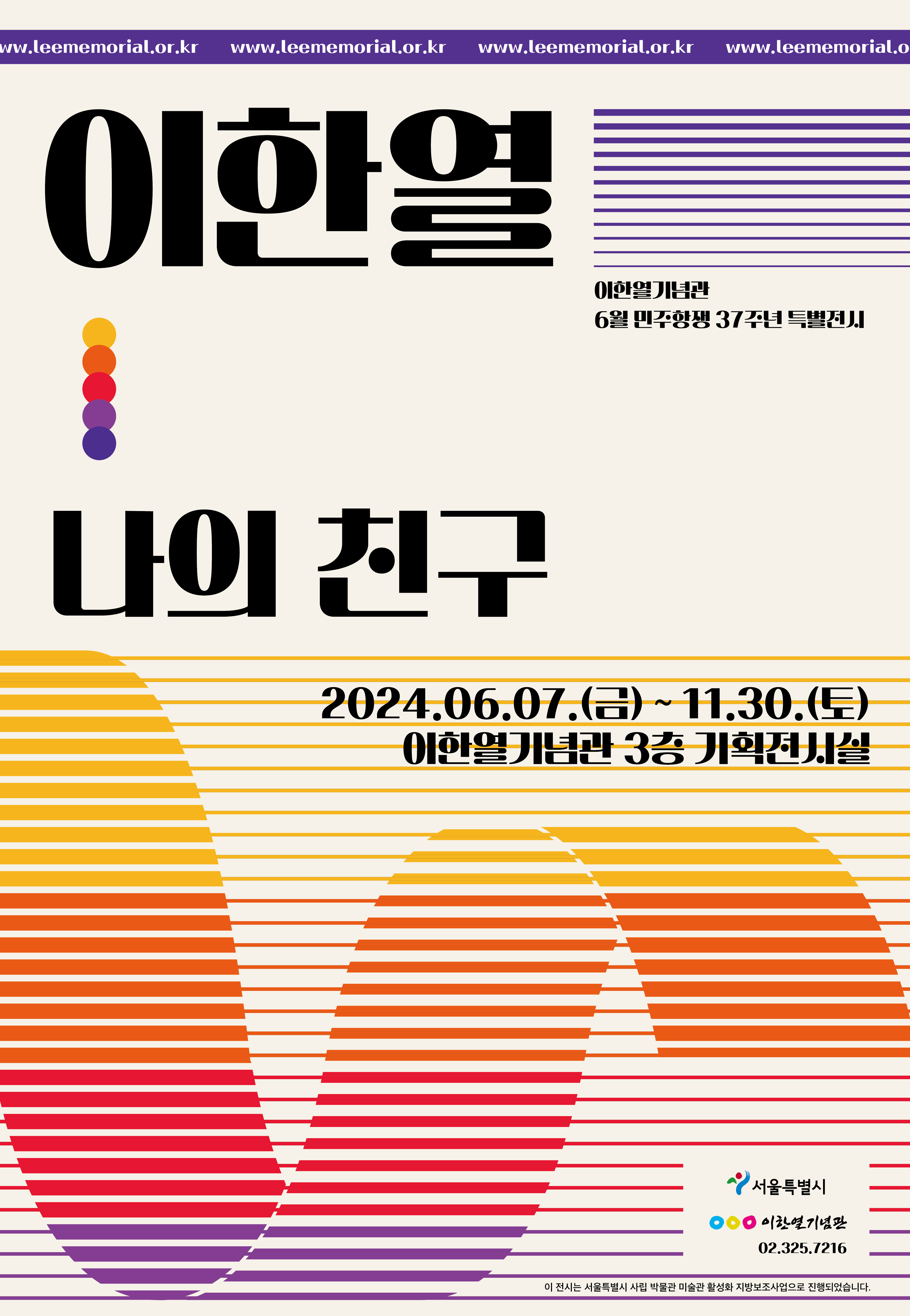 이번 전시는 대학생 이한열의 삶과 상계동 철거민, 박종철 열사 고문치사 사건, 이한열 최루탄 피격, 고문 살인 은폐규탄 및 호헌철페 국민대회, 명동성당 시위, 최루탄 추방대회, 노동자 대투쟁, 6 ·29선언 등을 역사적 시간 흐름으로 조망하려고 합니다. 1987년 민주주의를 쟁취하기 위해 노력한 국민들의 열망과 박종철과 이한열 민주열사들의 희생으로 비로소 국민들의 손으로 대통령을 직접 뽑을 수 있게 되었습니다. 본 전시를 통해 평범한 대학생 이한열의 삶과 6월 민주항쟁에 대해 더 알아가는 시간이 되시기를 바랍니다.